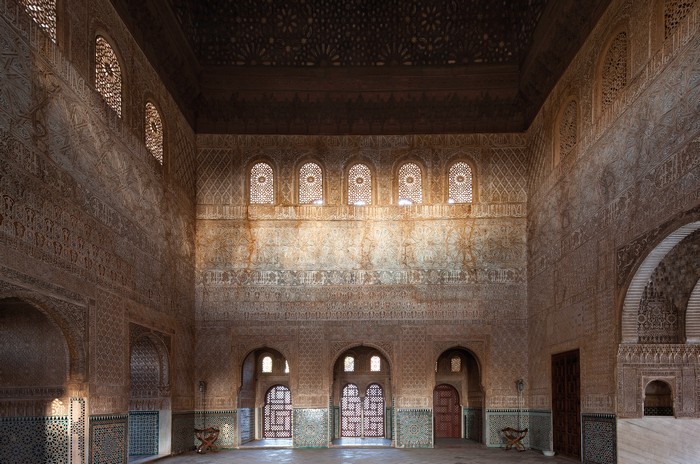 Itinerario previsto: sala del Mexuar, salón de Comares, sala de los Abencerrajes, torre de la Rauda, salón de los Reyes, sala de Dos Hermanas, palacio y oratorio del Partal.