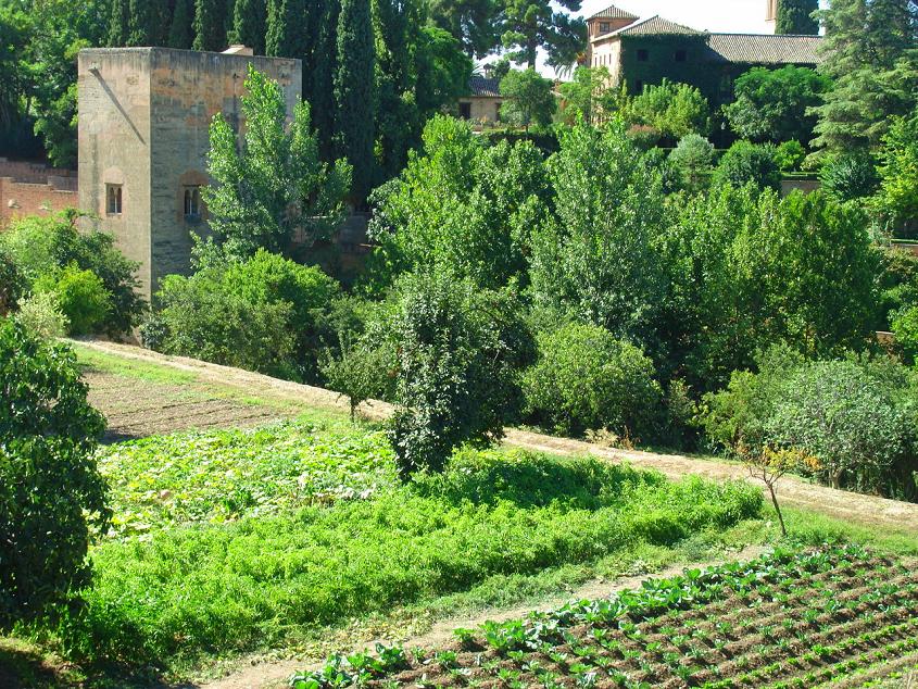 During the reign of the Nasrid kings, vegetables, pulses and fruits were grown in the gardens and surrounding areas to supply the court, reducing its dependence on other markets. One of the major contributions of the Arabs of al-Andalus was the introduction and propagation of species such as spinach, artichokes, watermelons, and pomegranate, white mulberry, peach and almond trees.