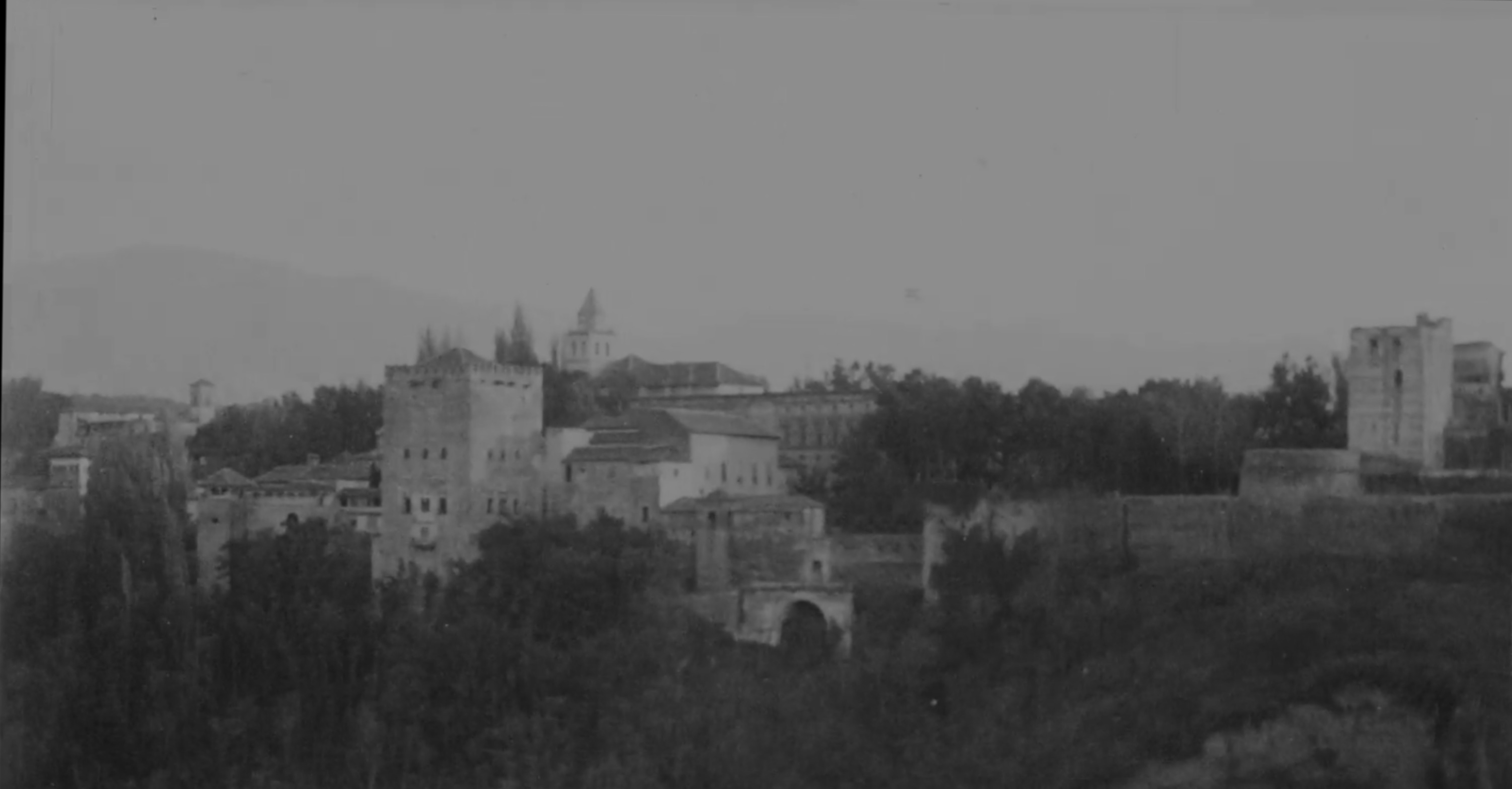 Vista del Albaicín desde la Alhambra. Captura de la película Voyage en Espagne, dirigida por Alice Guy, 1905, copia en el Patronato de la Alhambra y Generalife