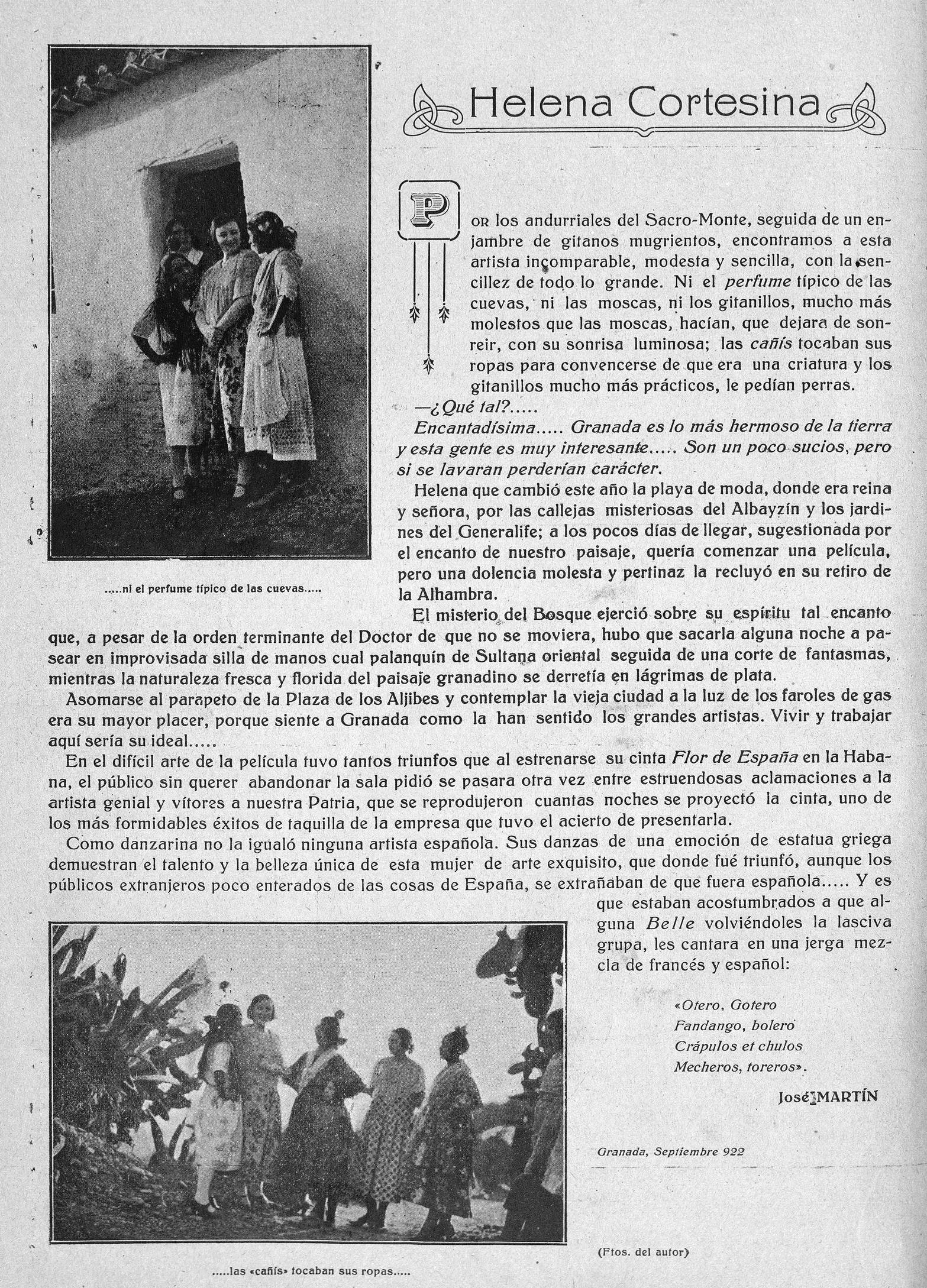Noticia sobre la directora española Helena Cortesina en su viaje por Granada. Granada Gráfica, octubre de 1922. Hemeroteca del Museo Casa de los Tiros. Biblioteca Virtual de Andalucía