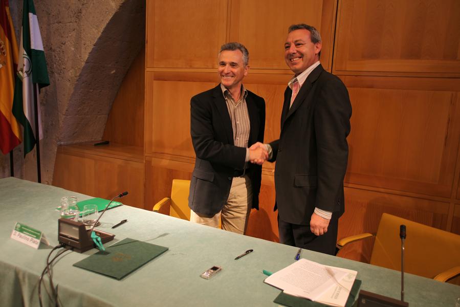 El consejero de Cultura, Paulino Plata, y el de Educación, Francisco Álvarez de la Chica, han firmado un convenio de colaboración entre el Patronato de la Alhambra y Generalife y el Consorcio Parque de las Ciencias. Con este acuerdo se pretende fomentar actividades educativas y de divulgación cultural y científica en el ámbito expositivo, en la innovación tecnológica y en la promoción de sus actividades.