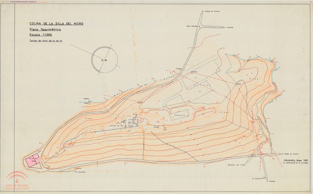 Pequeñas manchasOriginal, Papel vegetal, Lápiz rojo, tinta negra, acuarelas de color, 66 x 105 cm., 1/1.000, 10.4 - 10.5Numero de plano de la oficina técnica del servicio de conservación: 2417