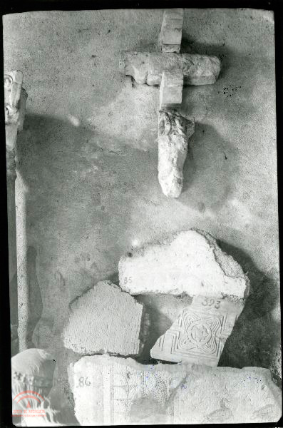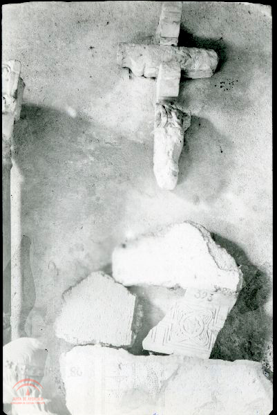 Fragmentos de decoración romana, donde se aprecia, un mosaico con el nº de inscripción 86, otros restos con el nº 393, ménsulas, etc... Probablemente en el Museo Arqueológico de Córdoba