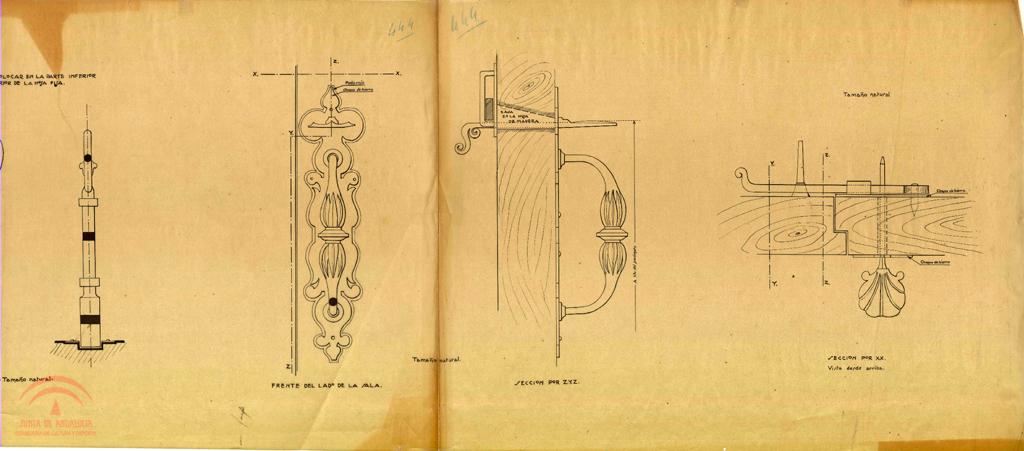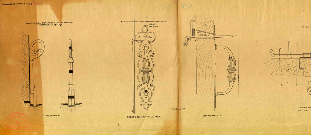 sector: 97 [Leopoldo Torres Balbás: "Unas salas de la Exposición Internacional del Mueble y Decoración de Interiores...", Arquitectura, VII, agosto 1925] Numero de plano de la oficina técnica del servicio de conservación: 444, (Alhambra-archivo de planos Nº 444)