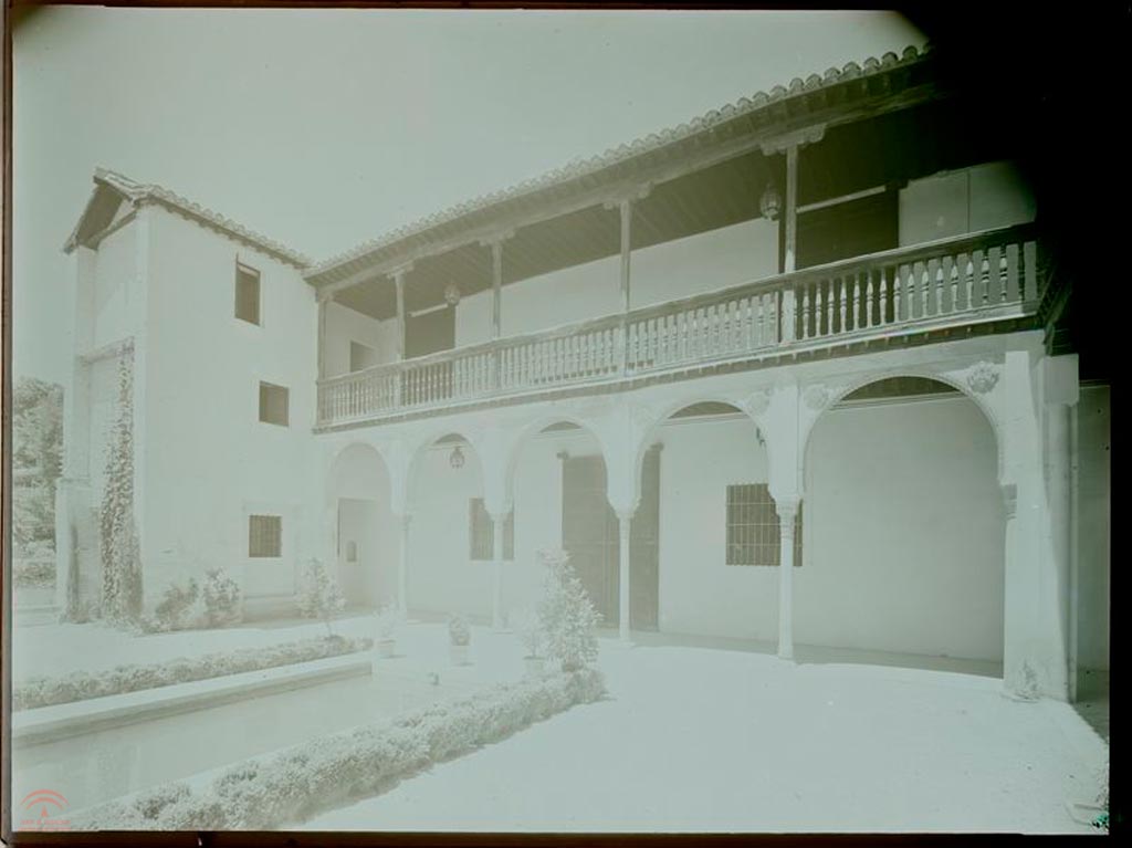 | Resumen: | Patio principal de la Casa morisca del Chapiz con galería de arcadas en su piso bajo. Imagen antes de la restauración. |