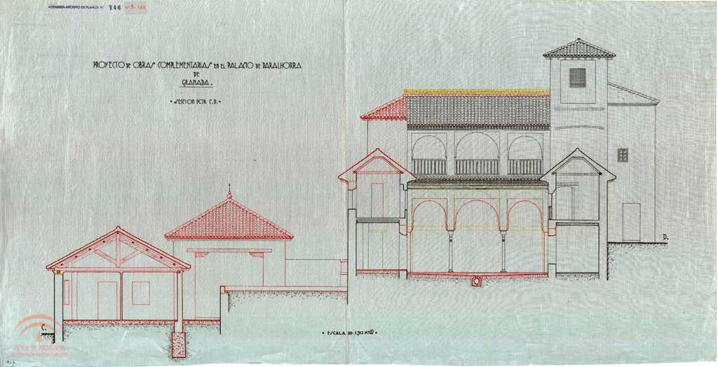 | Resumen: | Albaicín. Palacio de Daralhorra. Proyecto de obras complementarias. Sección por C-D |