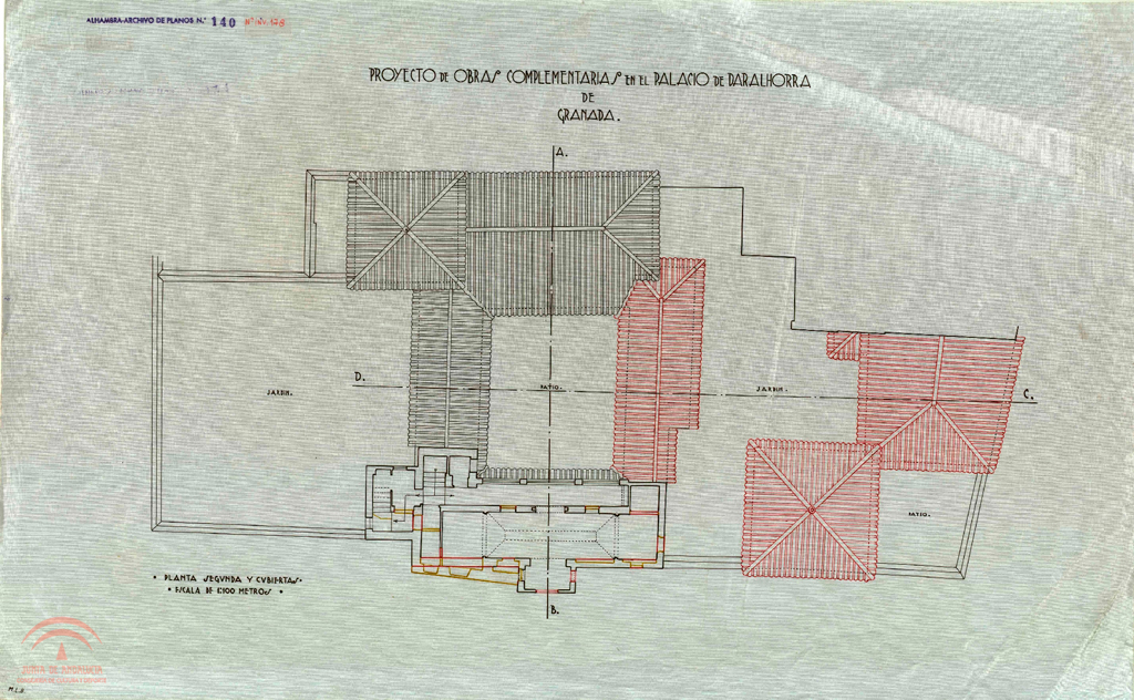 | Resumen: | Albaicín. Palacio de Daralhorra. Proyecto de obras complementarias. Planta de cubiertas |