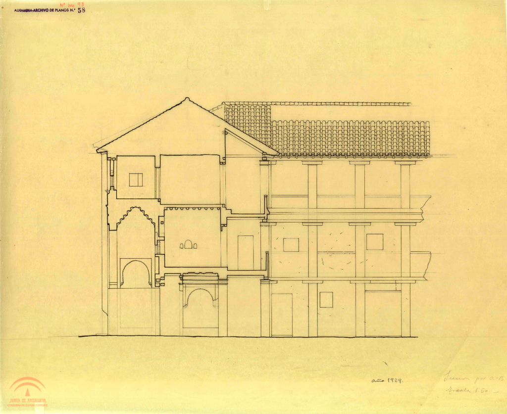 | Resumen: | Granada. Corral del Carbón. Sección por A-B del pabellón y parte del patio |