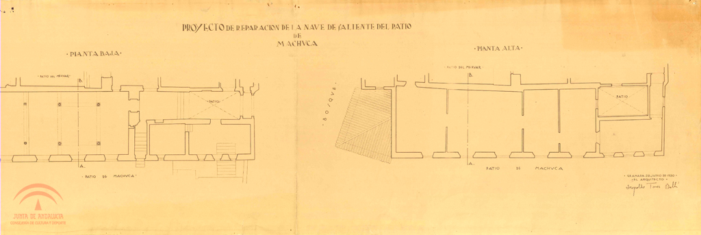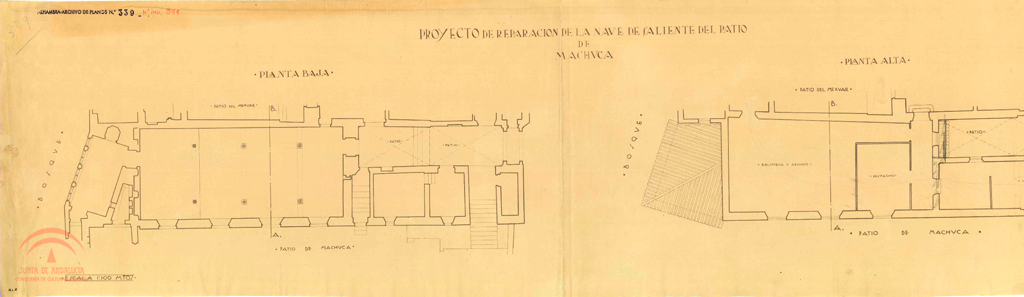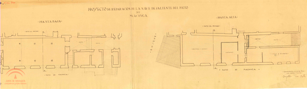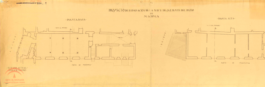Patio de Machuca. Proyecto de reparación Nave de saliente (Mexuar). Planta baja y alta