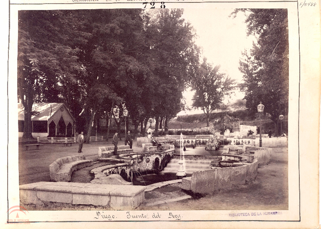 pegada sobre soporte secundario, sello de la biblioteca, en la parte superior escrito "728" 490x350 mm, copia a la albumina virada a sepia 1.1.1. Compuesta por dos fotografias en la misma cara del soporte, esta acompañada por la F-05487