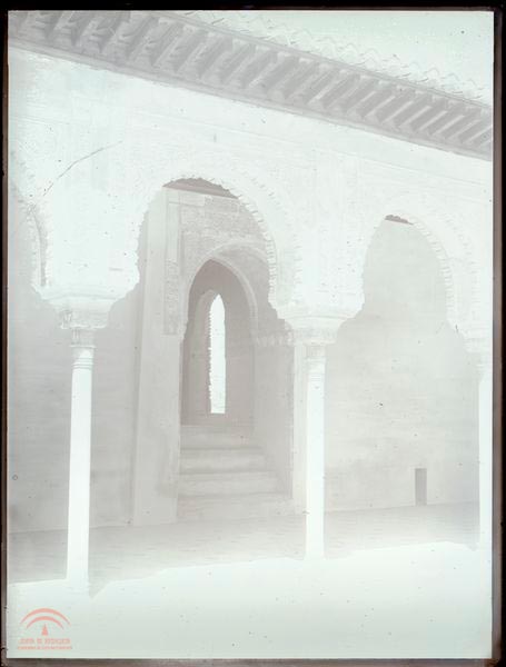 Se ve parcialmente un portico con arcos angrelados de capitel nazarí, y alero. Desde este punto de vista se observa el interior de una sala a la que se accede por escaleras. Priman los restos de decoración a base de yesería con ataurique.