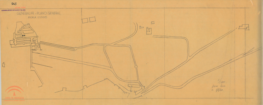 Generalife. Palacio y acceso hasta el vivero. Plano general (croquis)