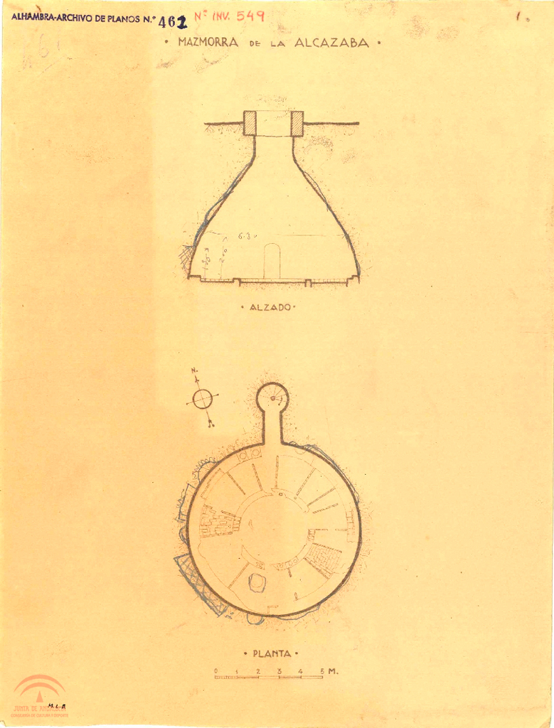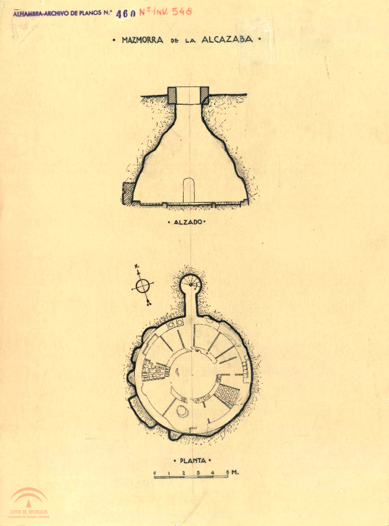 Alcazaba. Mazmorra. Estado actual. Alzado y planta