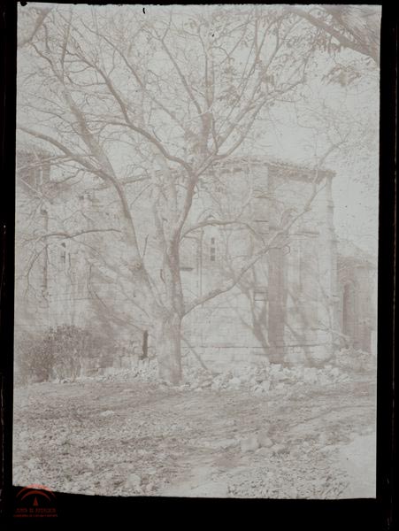 Interior de las ruinas del Monasterio románico de Bonaval, en un valle de la provincia de Guadalajara, cerca de Retiendas, en la comarca de Tamajón. Abside.
