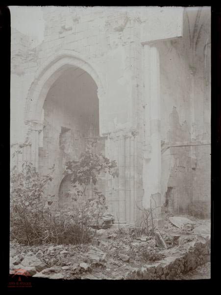 Interior de las ruinas del Monasterio románico de Bonaval, en un valle de la provincia de Guadalajara, cerca de Retiendas, en la comarca de Tamajón. Vemos vuelta de crucería y ventana con arco de medio punto.