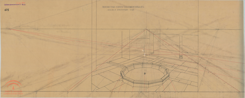| Tema: | López Reche, Manuel (delineante) Patio del Harem Harem Sala de los Abencerrajes Patio de los Leones Palacios Patios |