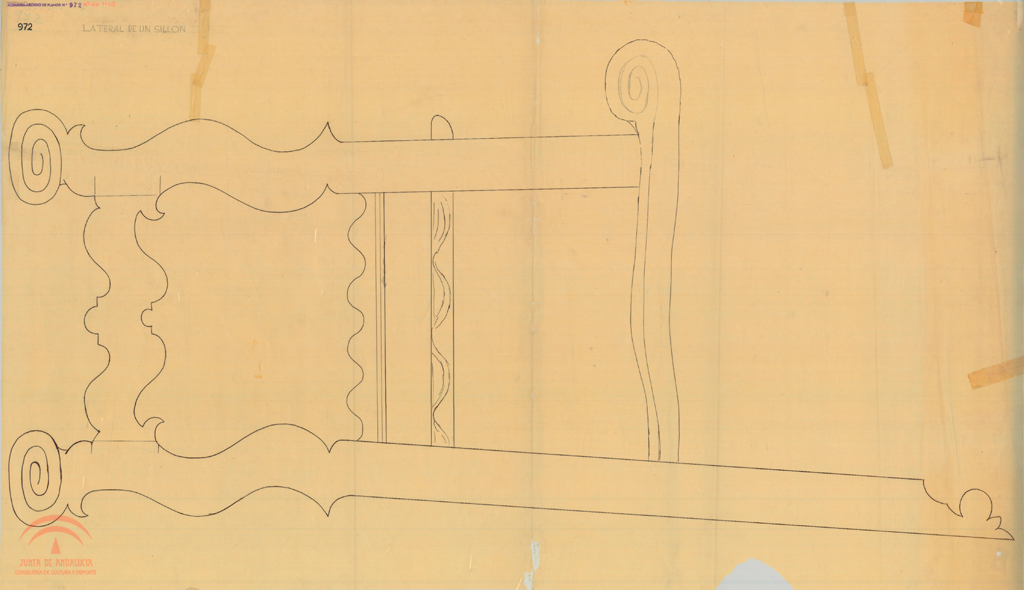Deteriorado: rasgados, cinta adhesiva, dobleces, agujerosOriginal, papel vegetal, tinta y lápiz, 116x67 cm., s.e.Número de plano de la oficina técnica del servicio de conservación: 972 (Alhambra-archivo de planos Nº 972)
