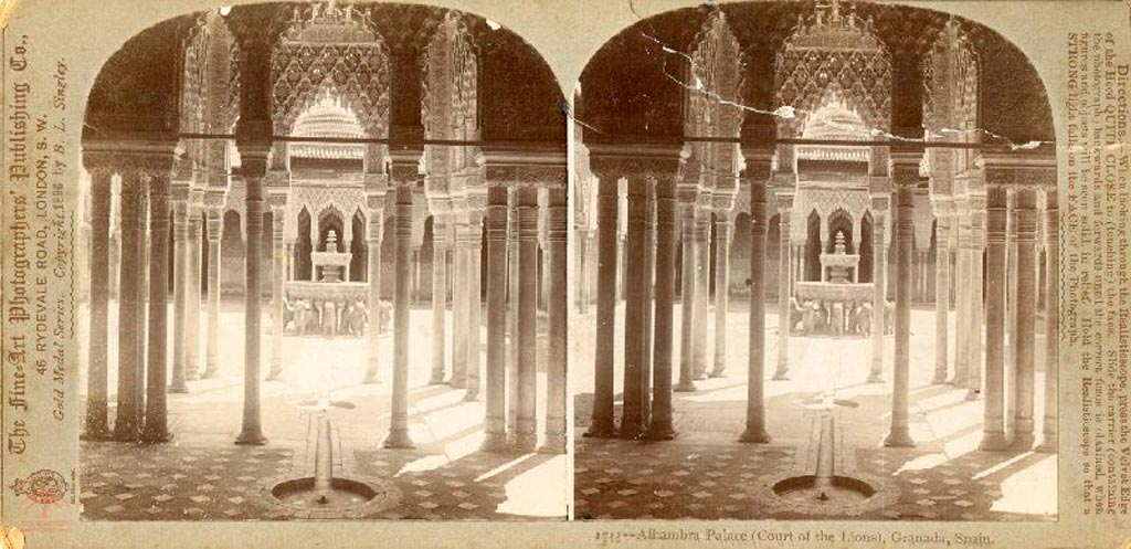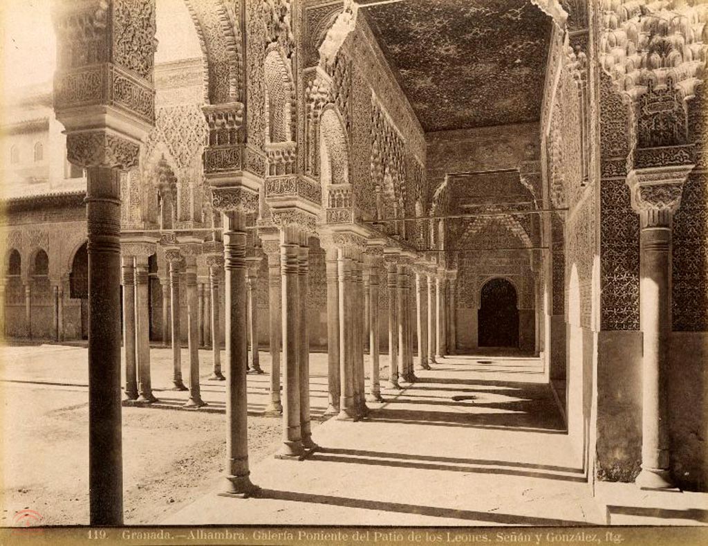 | Resumen: | Vista del Patio de los Leones y la galeria derecha desde la entrada meridional de Occidente, al fondo el Templete Oriental y en el centro la fuente con el añadido del "restaurador adornista" Rafael Contreras |