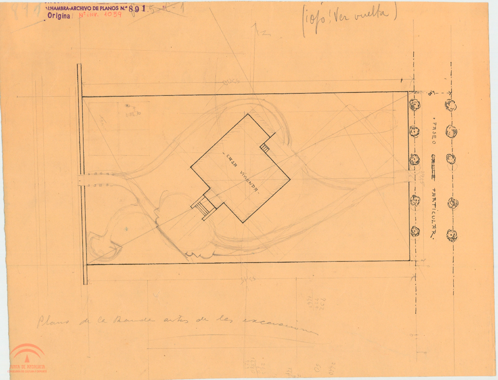 sector: 6.1.0.0. Leopoldo Torres Balbás:"Paseos por la Alhambra: la Rauda", Anuario Español de Arte y Arqueología, nº 6, sep-dic. 1926 Número de plano de la oficina técnica del servicio de conservación: 891 (Alhambra-archivo de planos Nº 891) Digitalizado Dibujado en anverso y en reverso |