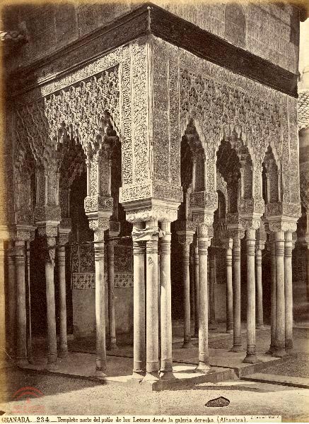Título: "Granada. 234. Templete norte del patio de los Leones desde la galeria derecha. (Alhambra). J. Laurent. Madrid"