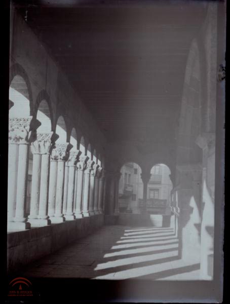 | Resumen: | Galería de arcos, todos ellos seguidos sin interrupción de pilastras montados sobre columnas pareadas muy esbeltas, con capiteles románicos. Parece la galería de un claustro abierto sobre la calle. |