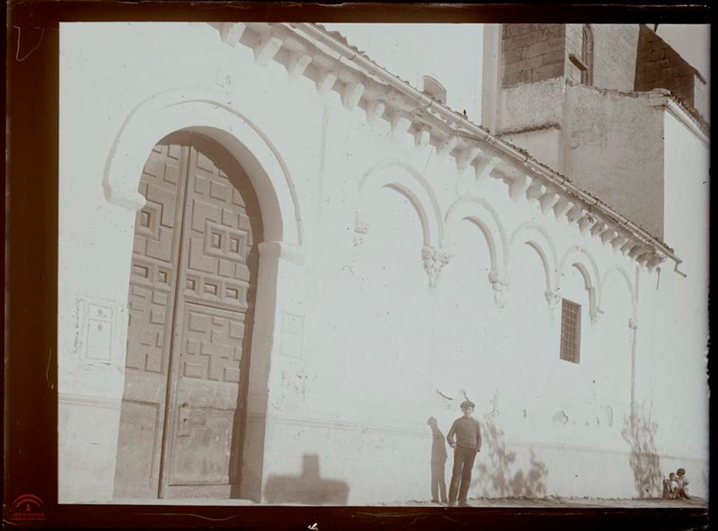 | Resumen: | El lateral de la iglesia tiene una puerta de madera cerrada con arco de medio punto, le siguen una serie de arcos ciegos que descansan sobre capiteles románicos con iconografía del bestiario medieval. Hay un hombre con gorra, y en la esquina dos niños. |