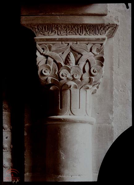 | Resumen: | Columna y capitel adosados al muro. Se aprecia la parte superior del fuste liso, a continuación un anillo y una cenefa ondulada para pasar al cimacio o cubo del capitel que recoge una decoración vegetal. |