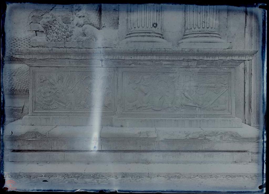 | Resumen: | Se recoge el relieve de Trofeos de Guerra y la escultura de un león sobre el pedestal. |