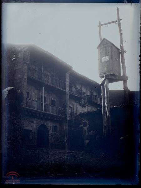 Resumen: Casas altas de Riocorbo. Santander. En primer plano una casita elevada para el teléfono