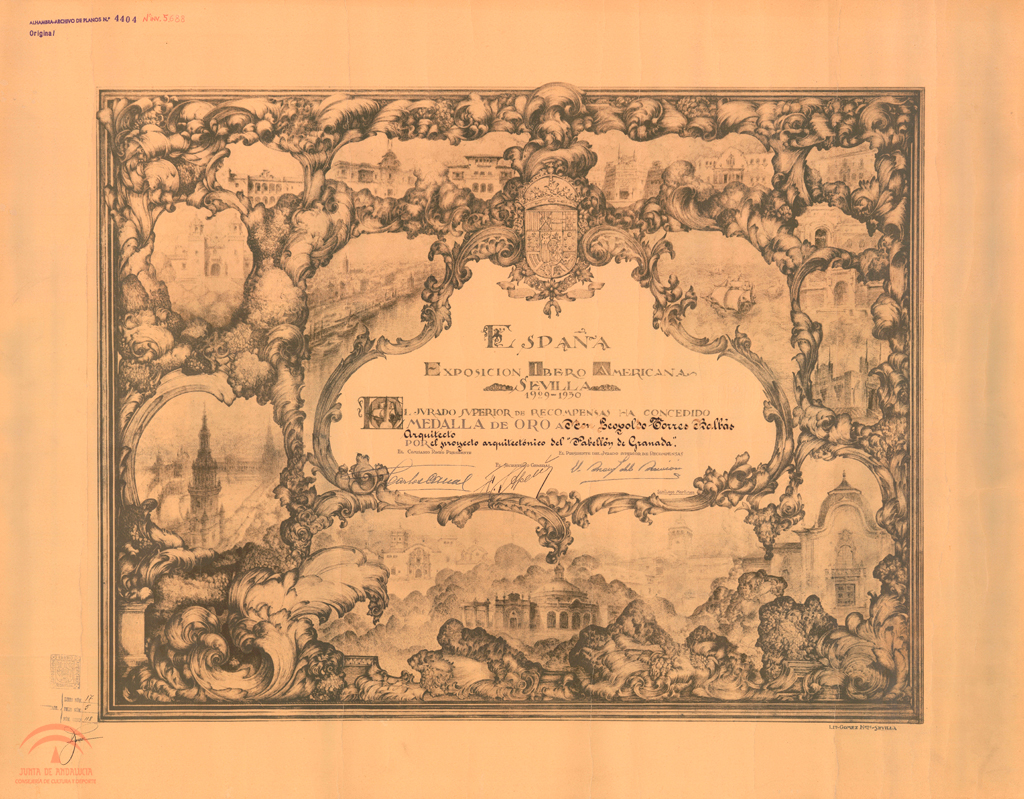 Diploma acreditativo de Medalla de Oro a Torres Balbás en la Exposición Ibero Americana (Sevilla, 1929-30)