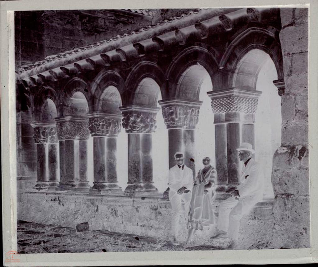 | Resumen: | Detalle del interior del patio donde vemos uno de los lados del claustro formado por seis arcos de medio punto sobre dos o cuatro columnas. Tres personas en primer plano. |