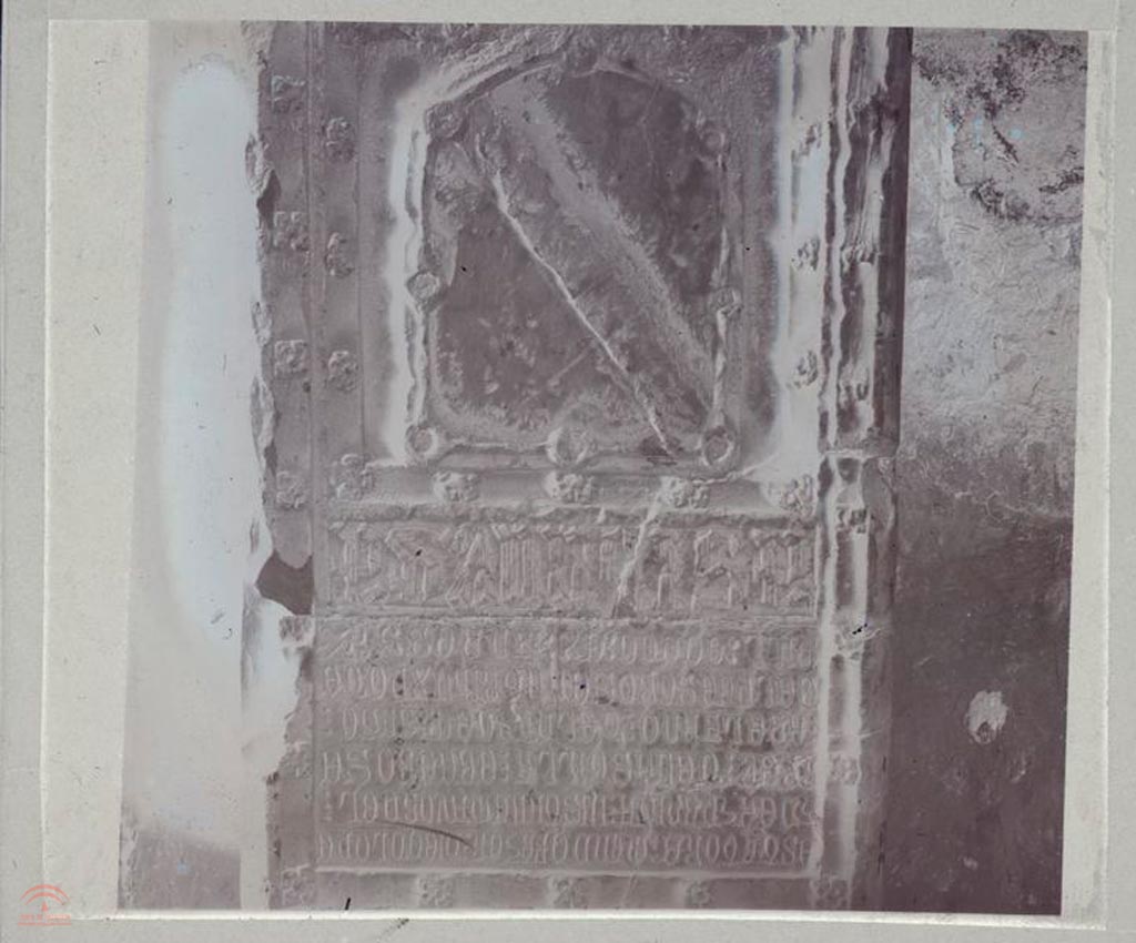 | Resumen: | Escudo tererciado de banda con ocho besantes. Esculpido en piedra con inscripción en castellano en la parte superior.Se trata del escudo de los Zúñiga y la inscripción, en la que se señala la fecha de terminación de la construcción del castillo (1410), fue transcrita por Leopoldo Torres Balbás. Esta lápida estaba colocada sobre la entrada principal del Castillo de Curiel de Duero y se perdío entre los años 1919-1920. Probablemente la foto es el único documento gráfico que existe. |