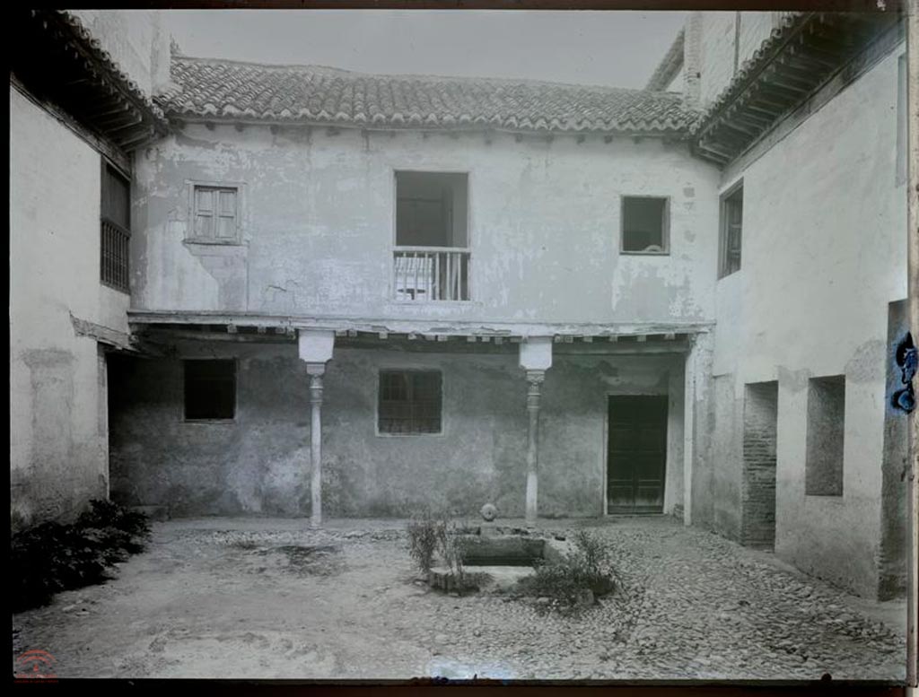 | Resumen: | Vista de una de las fachadas del patio rectangular del Palacio con pequeña alberca. Antes de la intervención de Torres Balbás. |