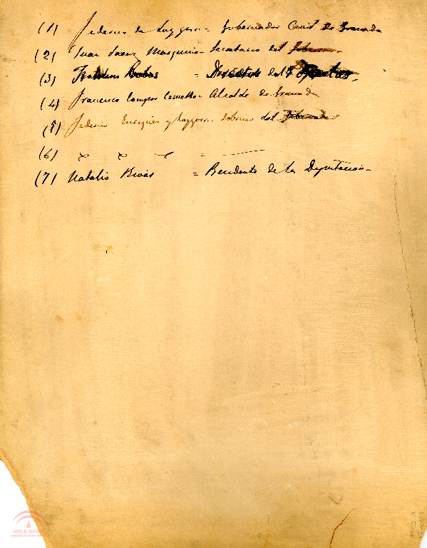 | dc.description | 1.4.4. Manuscrito se lee "(1) Federico de Loygorri, Gobernador civil de Granada. (2) Juan Saenz Marquina, Secretario del Gobernador. (3) ¿? Cobos, Director del Popular. (4) Francisco Campos Cervello, Alcalde de Granada. (5) Federico Enriquez y Loygorri, Sobrino del Gobernador. (6) ---,-- (7) Natalio Rivas, Presidente de la Diputacion" | es_ES |