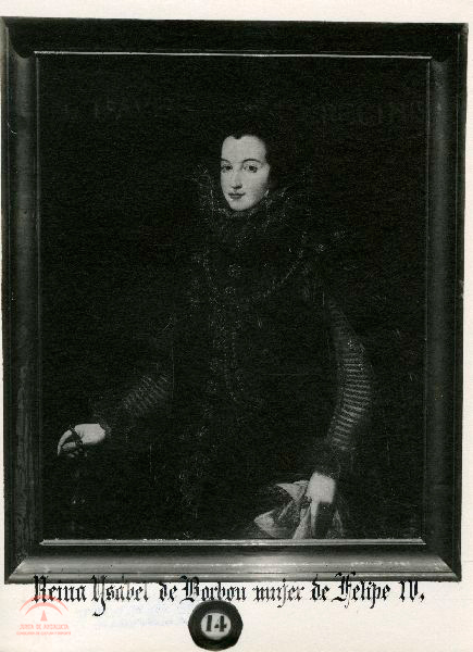 Fotografía de un retrato de la Reina Isabel de Borbón, mujer de Felipe IV, un óleo sobre lienzo, del siglo XVI, perteneciente a la colección del Generalife del Museo de la casa de los tiros, con el nº 14