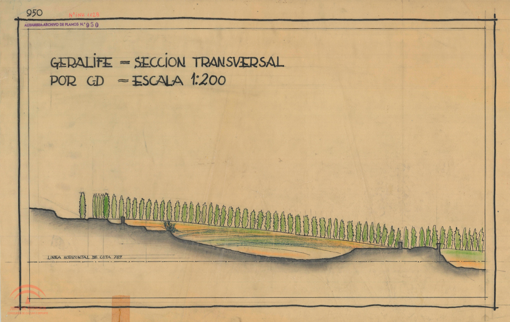 | Resumen: | Generalife. Sección longitudinal por A-B |