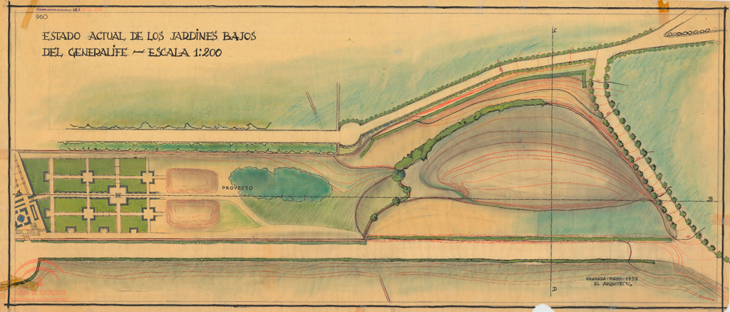 | Resumen: | Generalife. Estado actual de los Jardines Bajos. Planta |
