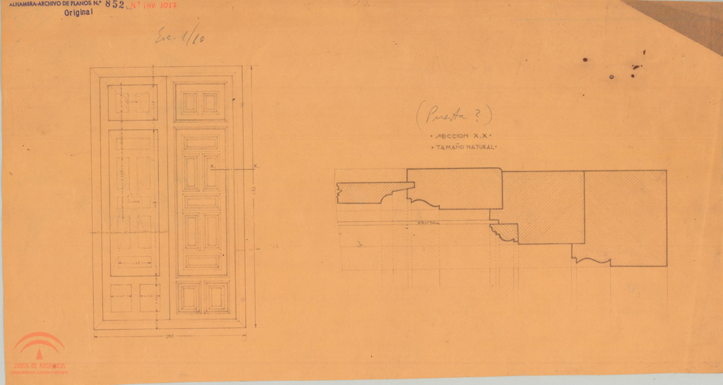| Título: | "(Puerta ?). Sección X-X. Tamaño natural" [Palacio de Carlos V] |