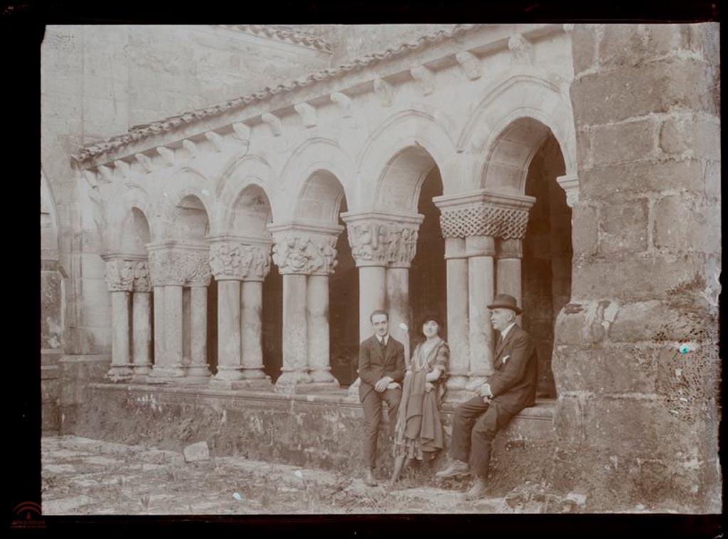 | Resumen: | Detalle del interior del patio donde vemos uno de los lados del claustro formado por seis arcos de medio punto sobre dos o cuatro columnas. Tres personas en primer plano. |