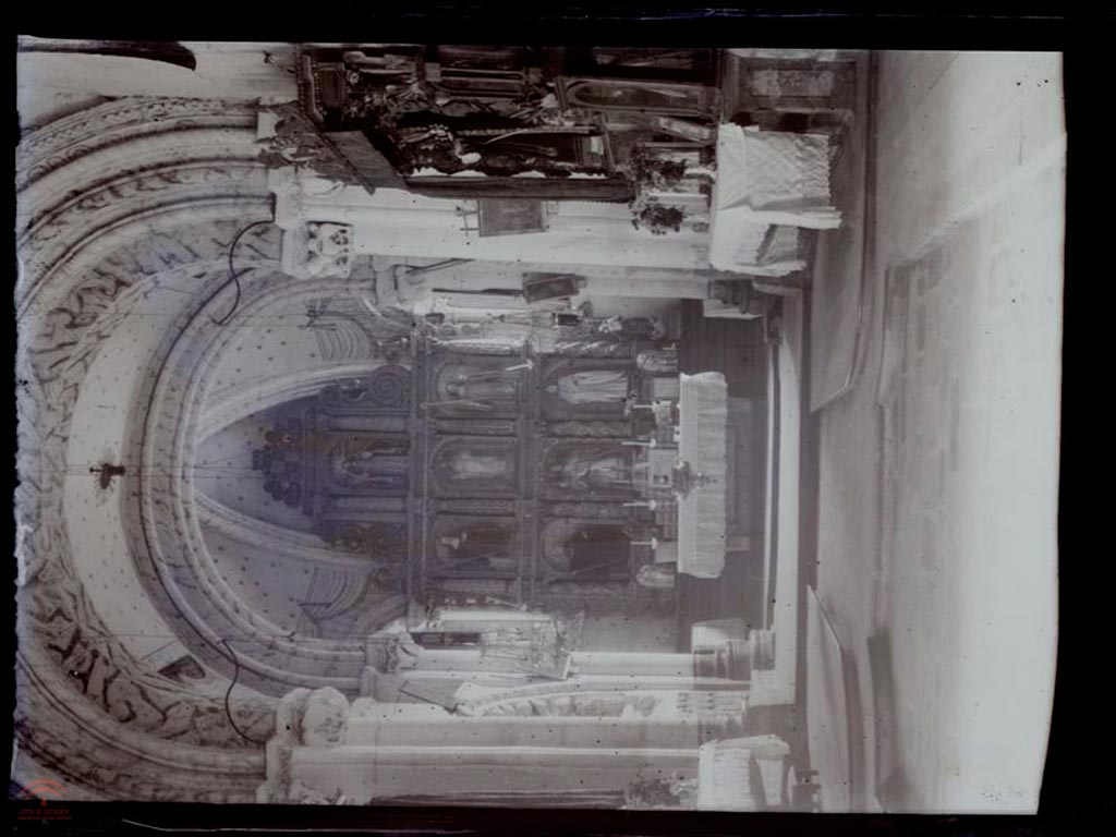 | Resumen: | Vista parcial de nave central y altar de iglesia, construida en piedra con grandes pilares de columnas adosadas y capiteles de tosca decoración. Se aprecia un retablo de estilo barroco. |