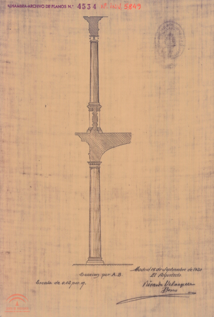 | Título: | Palacio de Carlos V. Patio. Sección por las columnas [1920-sep.] |