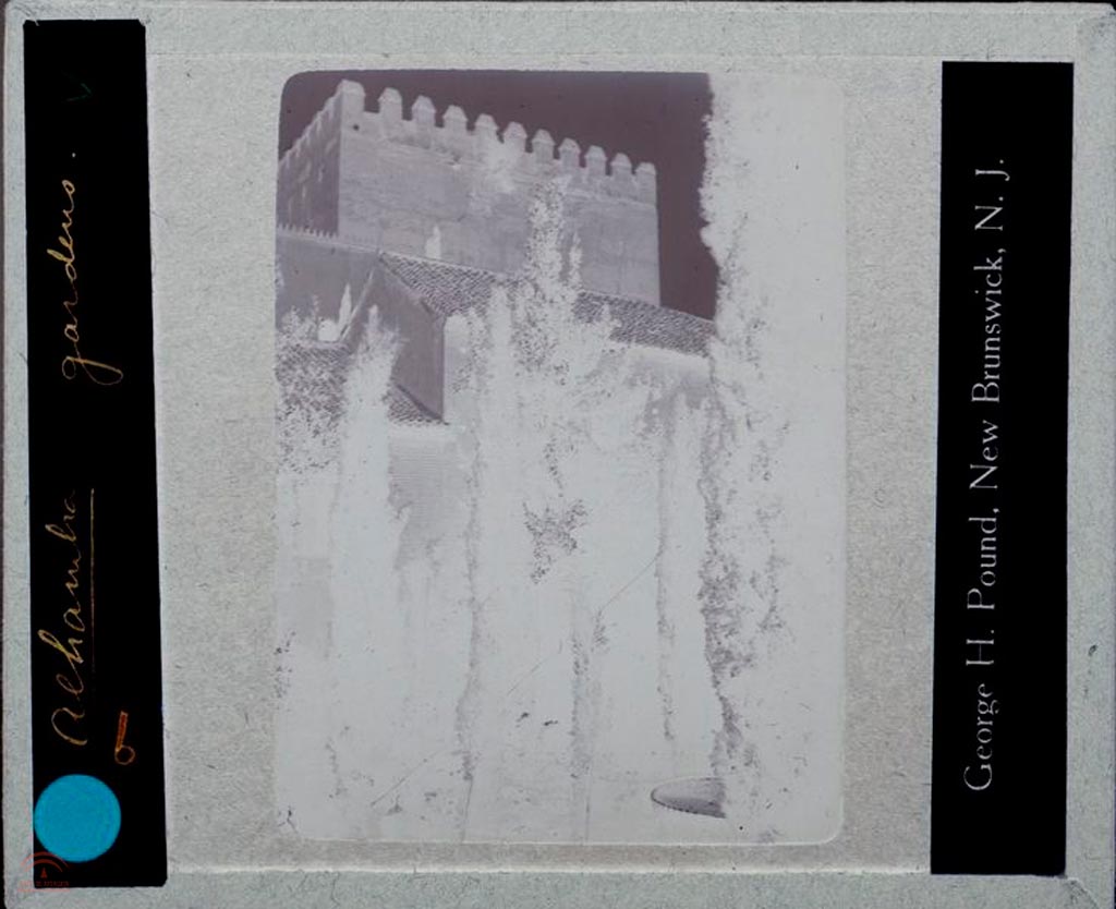 | Resumen: | Vista de la torre de Comares desde los jardines de Lindaraja en la Alhambra. Geoge H.Pound |