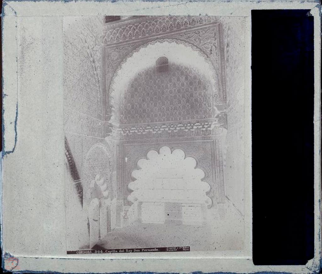 | Resumen: | La diapositiva es una reproducción de la fotografía que Jean Laurent realizó de la capilla del Rey Don Fernando en la Mezquita Catedral de Córdoba en la década de 1870 |