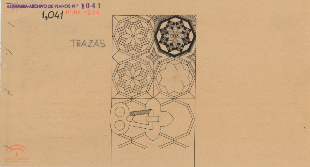 | Título: | Fragmento de taracea y bisagra. Alzado de la traza |