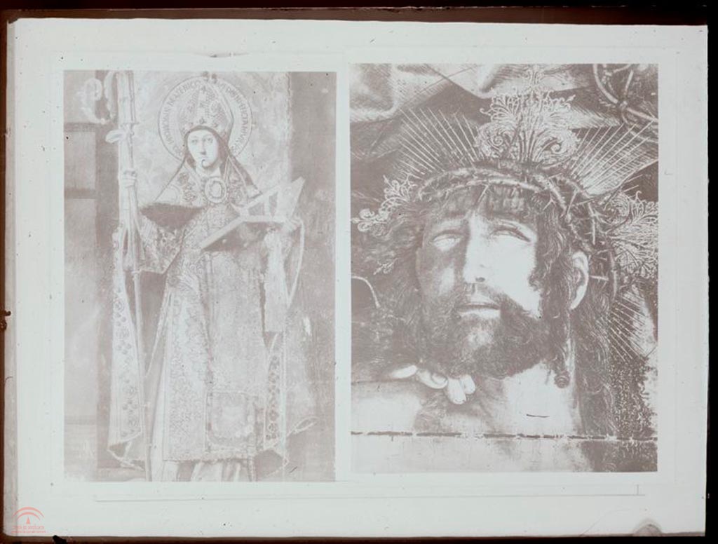 | Título: | Representación de un Obispo beatificado - Detalle de una pintura, del rostro de un Cristo Muerto |
