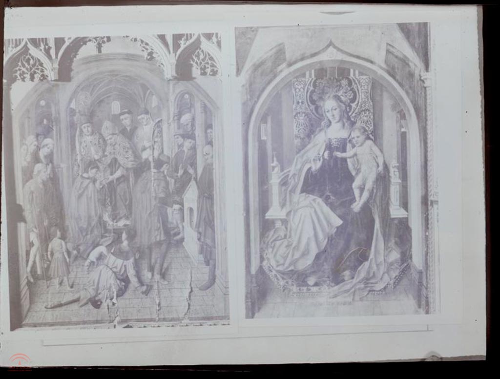 | Resumen: | Dos láminas, probablemente pertenecientes a un libro.Cada una ocupa una mitad del soporte.En la pint Gótica aprarece un obispo dandole un cofre a un hombre, bajo una boveda de cruceria estrellada . Rodeados por gran número de personajes. Valca Universal (Ortocromática Antihalo) |