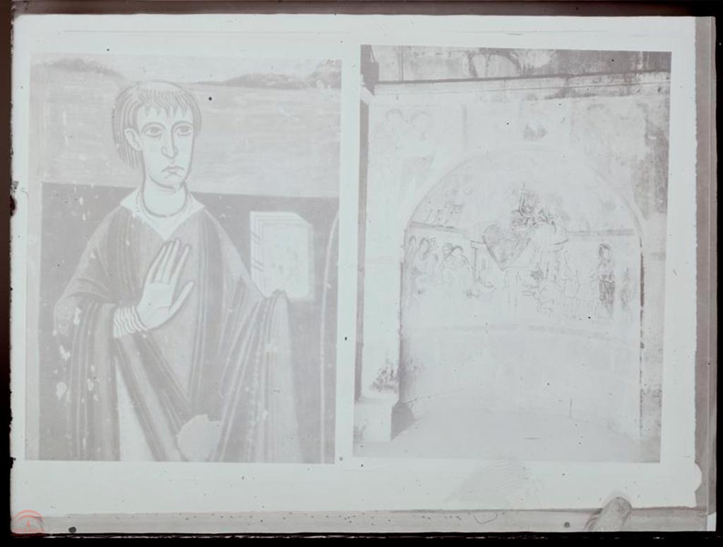 | Título: | Interior del abside de la ermita de San Juán en Uncastillo - Pintura Mural de un apostol |