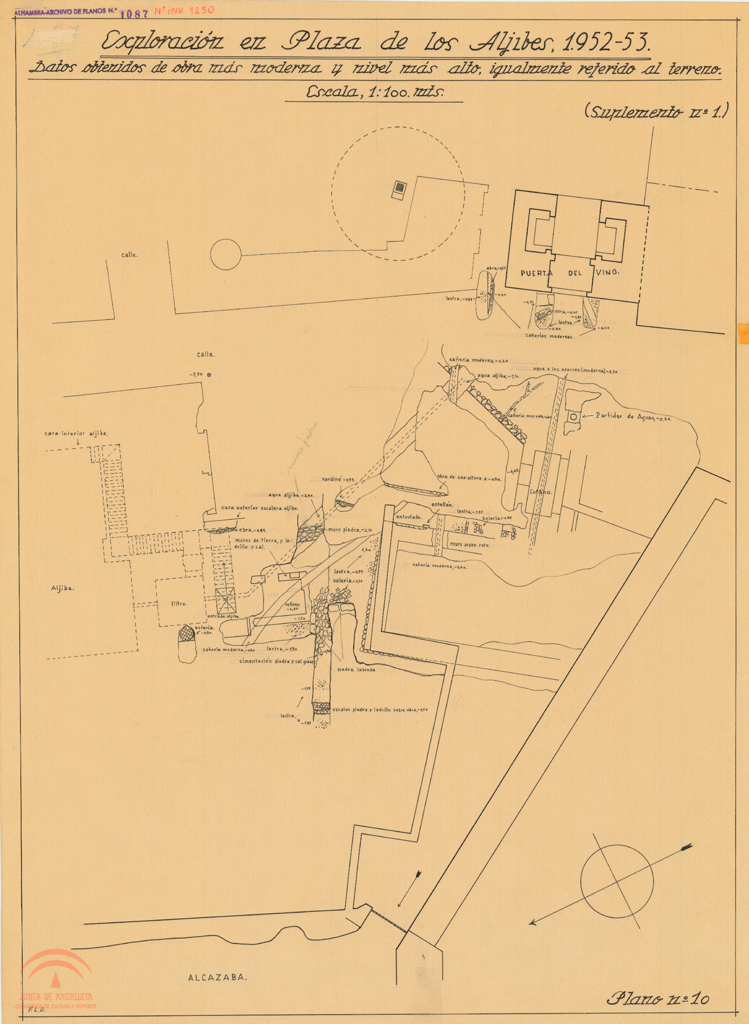 | Título: | Exploración de la Plaza de los Aljibes. Plano nº 10. Datos obtenidos de obra más moderna y nivel más alto. Suplemento 1 |