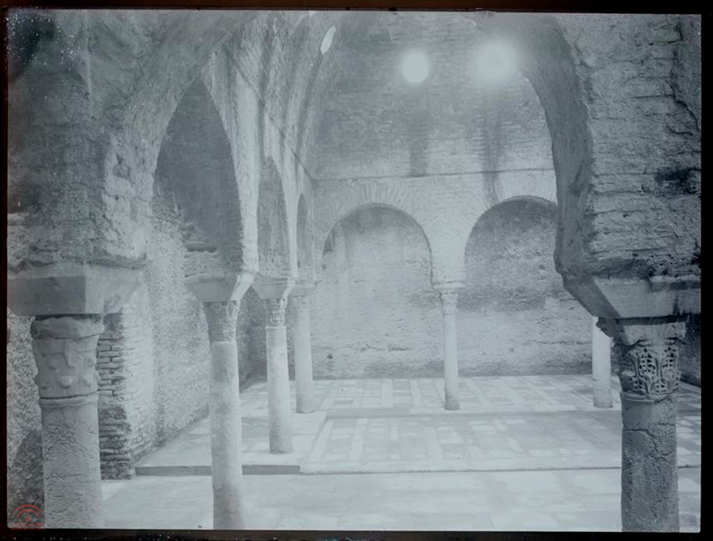 Resumen: Vista general desde uno de sus ángulos. Al fondo se aprecia el muro de acceso en la sala de calderas. Después de la restauración. La alberca central ha desaparecido.