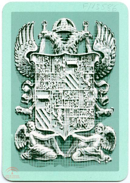 | Descripción: | es una carta de poker 90x60 mm, copia offset 1.1.1. Su numero de registro topografico de compra de documentacion: R-4435 1.4.4. Es una carta de una baraja de poker, reina de trebol, en el verso el escudo de armas imperiales |
